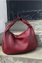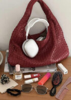 This red wine-colored shoulder bag offers a blend of style and elegance. Its sleek design and soft texture make it an ideal accessory for any occasion, providing both comfort and sophistication.